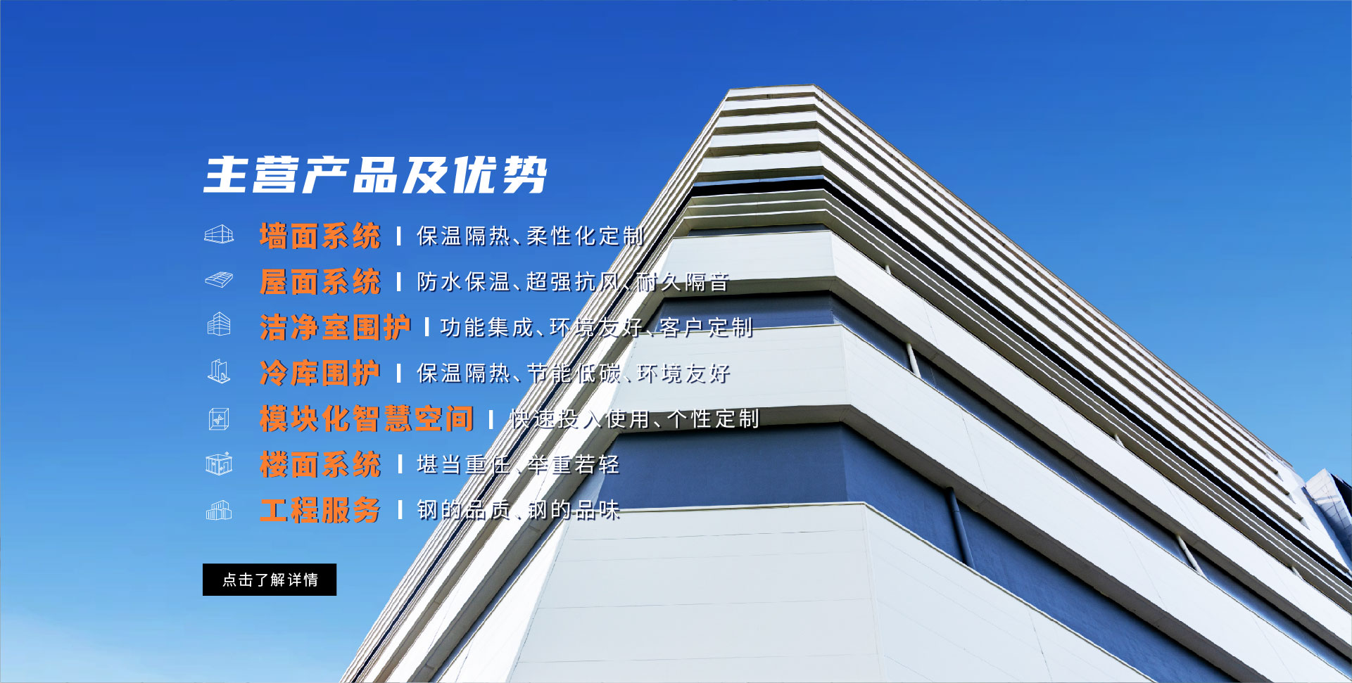 墻面系統 屋面系統 樓面系統 建筑鋼結構 潔凈室圍護 冷庫圍護 得默產品系列 全面解決方案